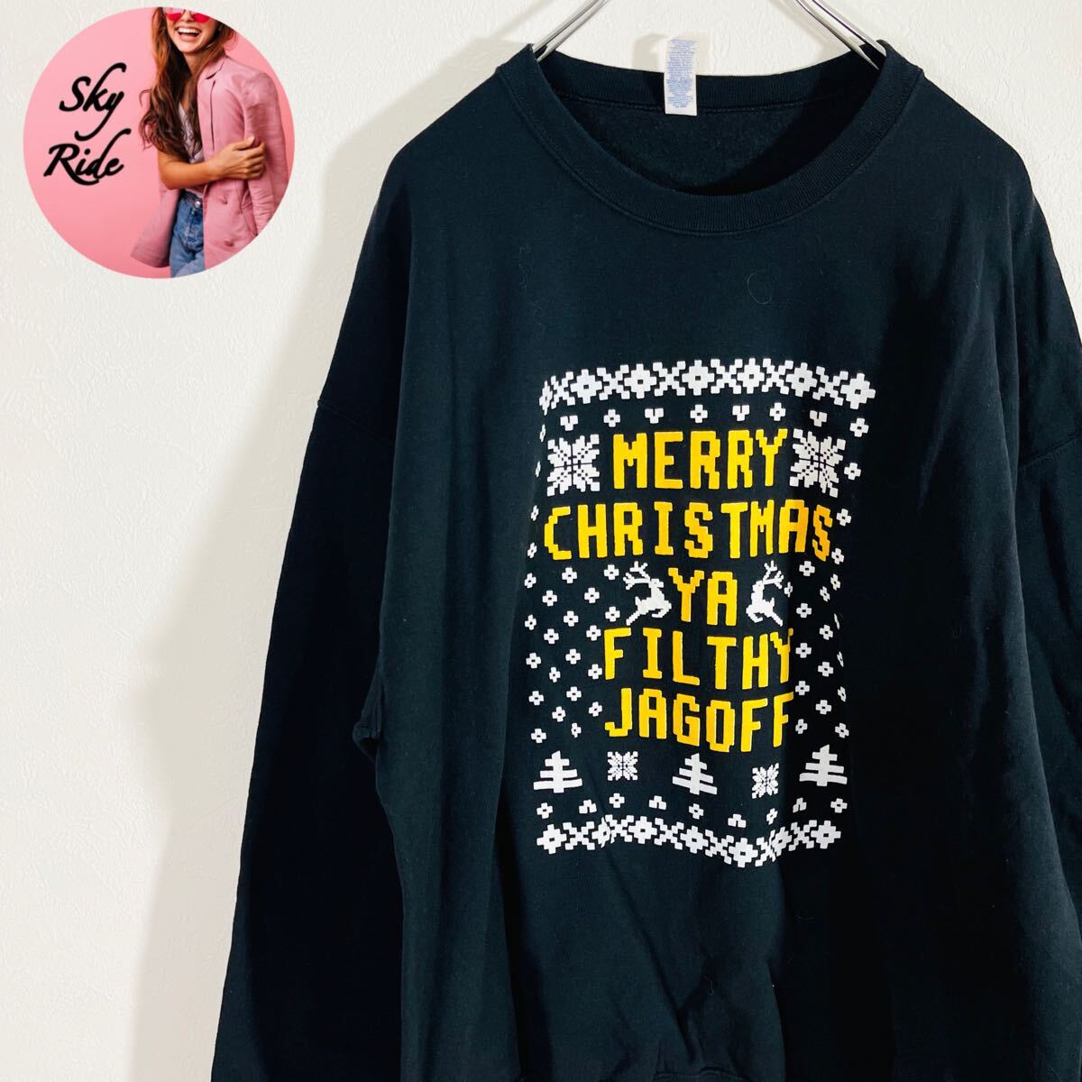 - JERZEES ジャージーズ メンズ ヴィンテージ メリークリスマス ビッグプリント プルオーバースウェット トレーナー 黒 XL 古着 #TB1049