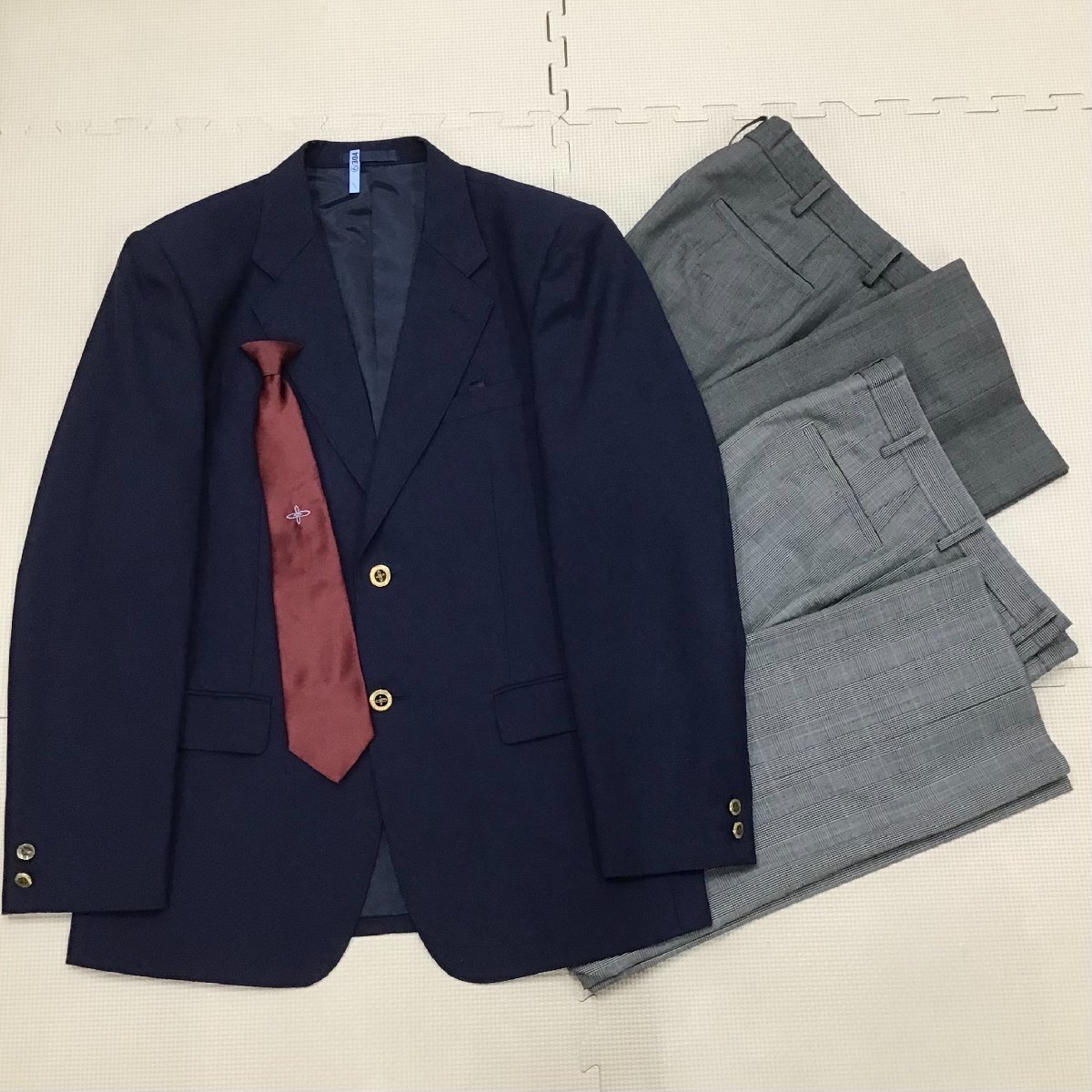 - O1112/T1232(中古)栃木県 宇都宮市立姿川中学校 4点 /指定品/ブレザー:175A/冬夏ズボン:W79/ネクタイ/KANKO/グレー/高校/男子生徒/卒業生品