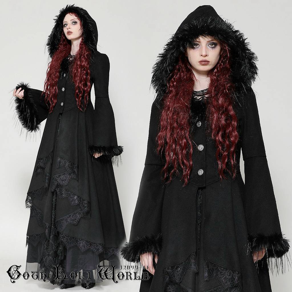 - JW282-S ファーフード付 ロングコート ゴスロリワールド ゴシック パンク ロック ロリィタ ビジュアル系 V系