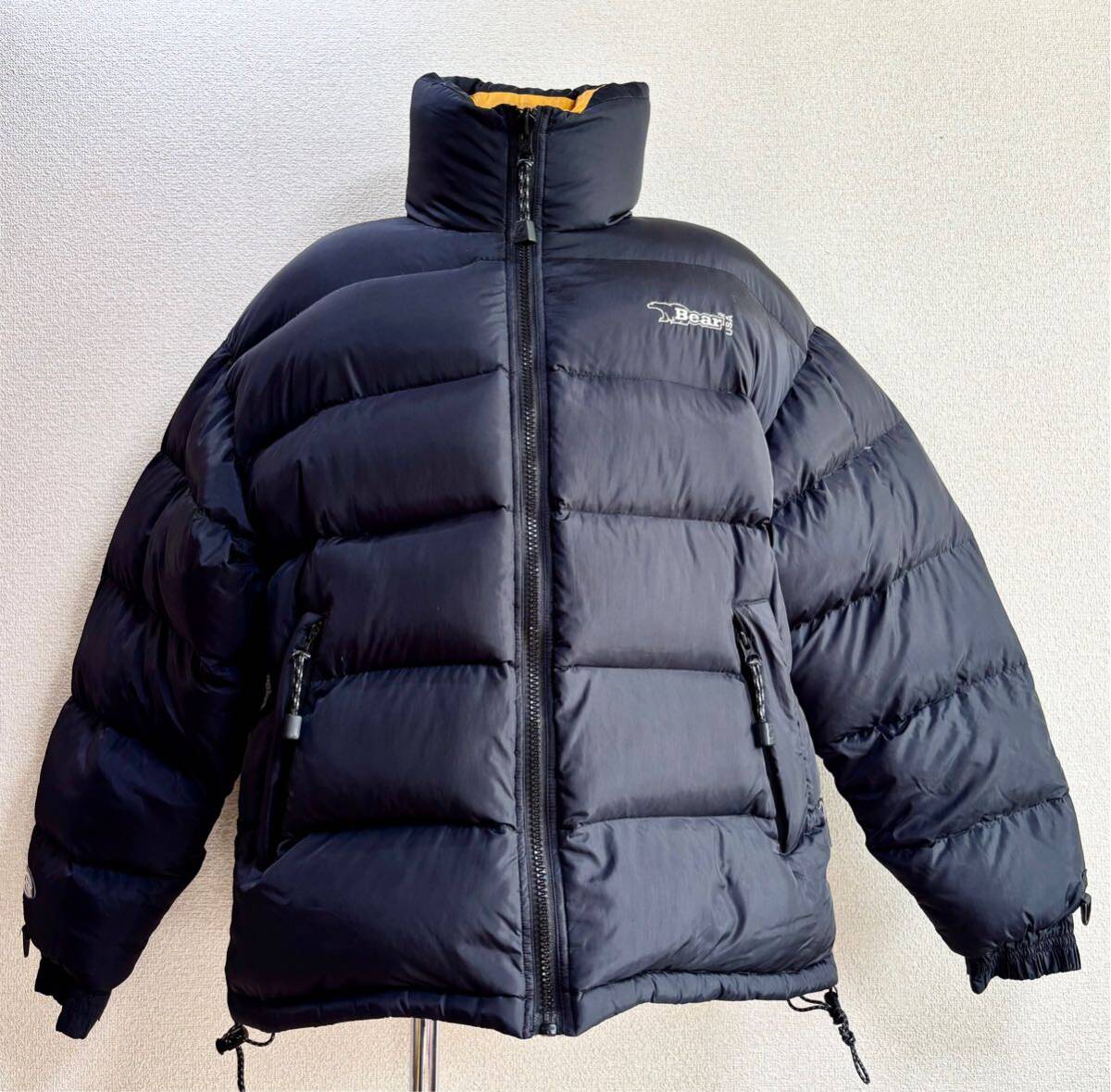 - 【ダウンパンパン】90s ベアー Bear USA リバーシブルダウンジャケット M(大き目)実寸L位 黒 ブラック/イエロー 刺繍ロゴ ヌプシジャケット