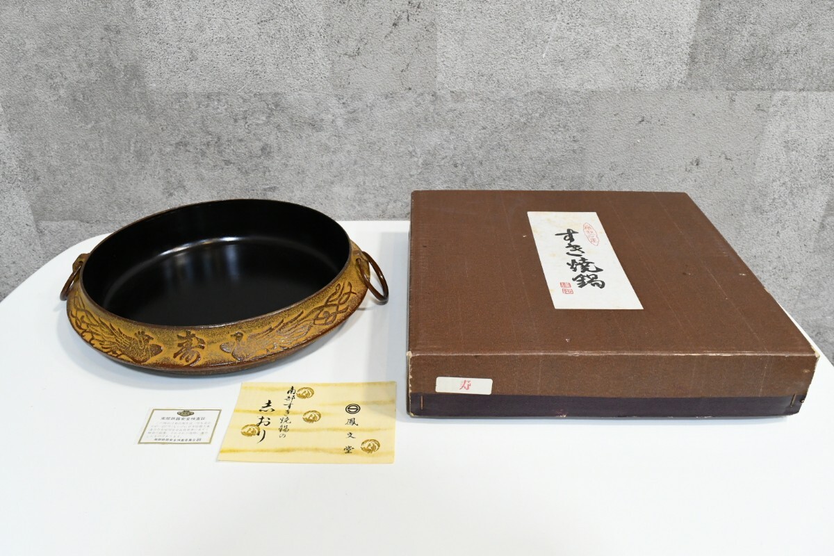 > trok536 未使用 凰文堂 南部鉄器 すき焼き鍋 鉄鍋 両手鍋 ナベ 鳥 調理器具 炊事 食器 和風 工芸品