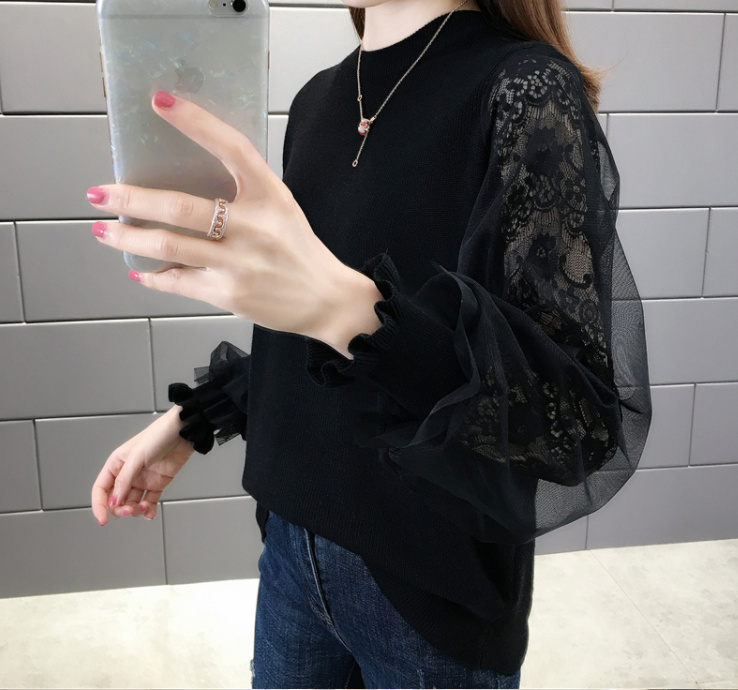 - ニット セーター レース シースルー バルーン袖 ゆったり ふんわり シルエット 秋冬 レディース 柔らかい 上品