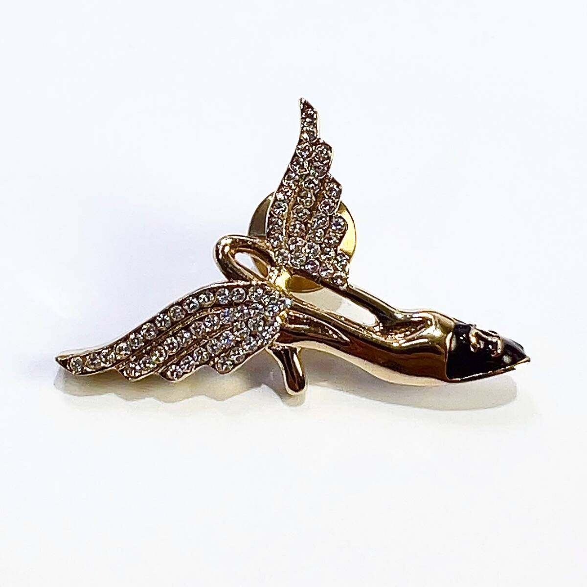 > CHANEL ココマーク ウィング ヒール モチーフ ラインストーン ブローチ B23C GP ゴールド レディース アクセサリー タックピンブローチ美品