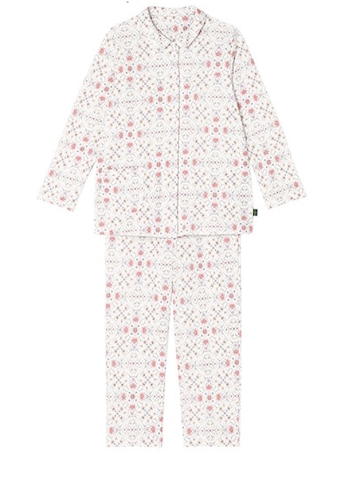 - ミントン MINTON★ワコール★長袖 パジャマ★Lサイズ★ハドンホール ジオメトリック★あったか 裏起毛 綿混 吸湿発熱★ホワイト/WH★日本製