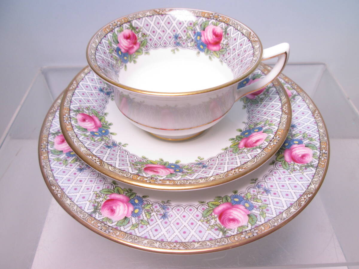 - ☆ ヴィンテージ エインズレイ 薔薇とパープルリボンのアンティークティーカップトリオ(1905-)箱無し