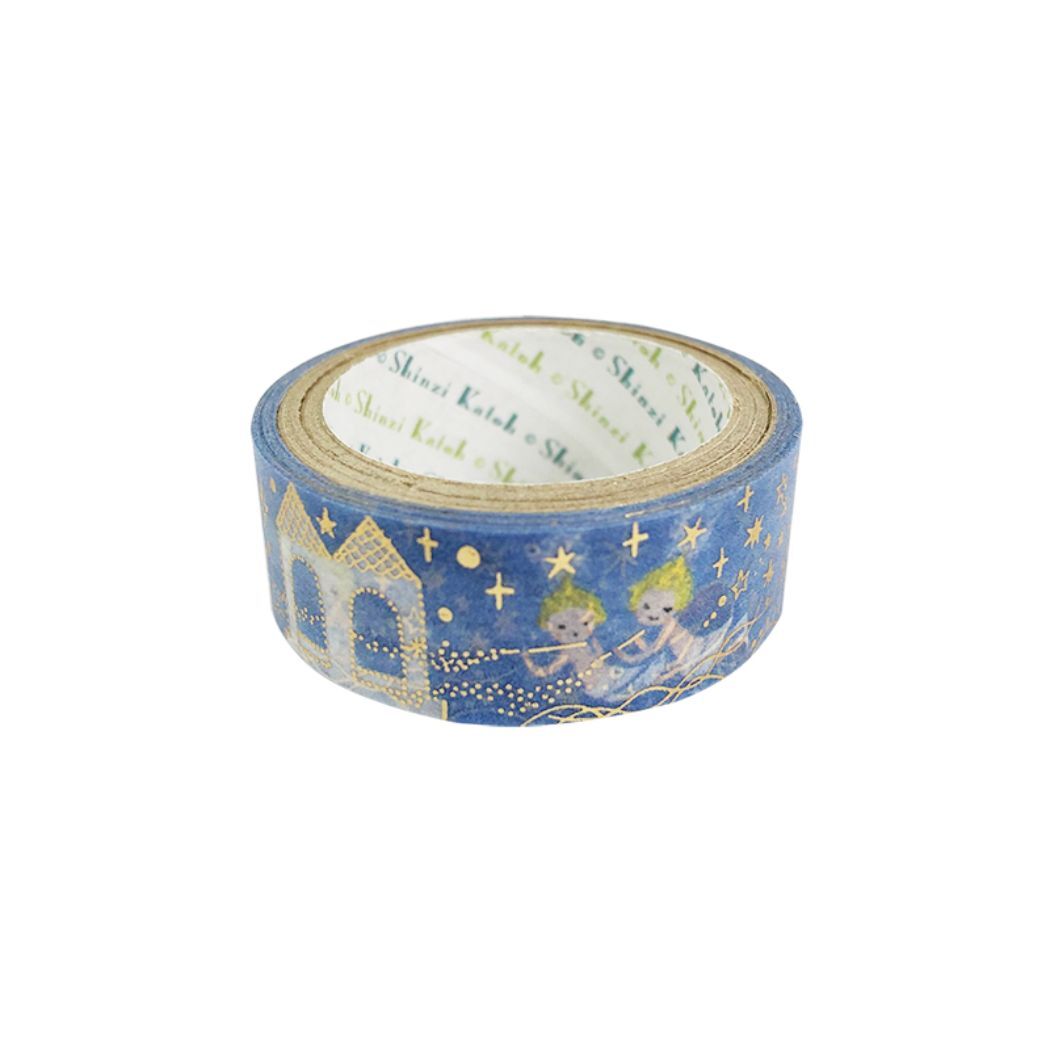 - マステ 宮沢賢治幻燈館 きらぴかマスキングテープ 15mm 双子の星 ゴールドホログラム箔