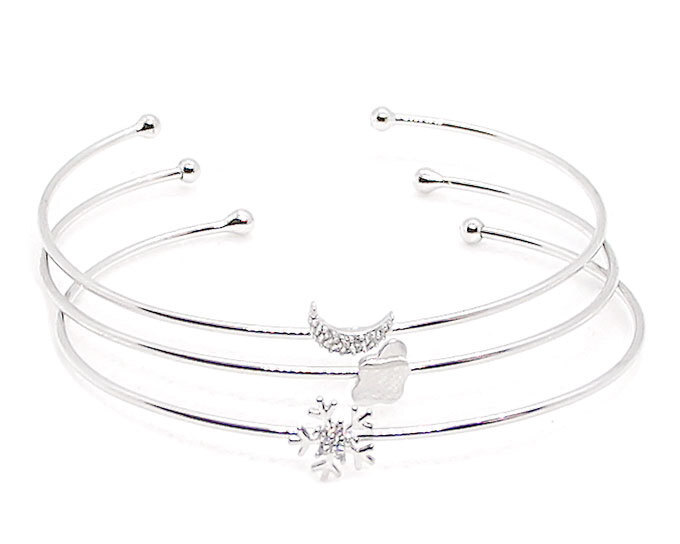 - ブレスレット バングル レディ-ス 3連 月 雪結晶 雲 シルバ- ラインスト-ン ギフト mimosa