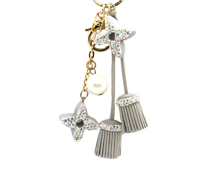 - キーホルダー バッグチャーム おしゃれ フラワー タッセル キーリング付 パール風 グレー mimosa