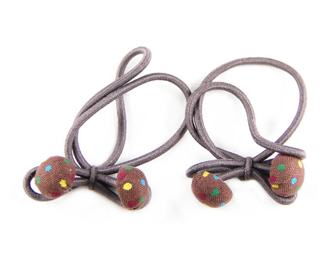 - ヘアゴム 子供 キッズ 限定 100円セール リボン 水玉 ドット 2重ゴム ブラウン ポイント消費 mimosa