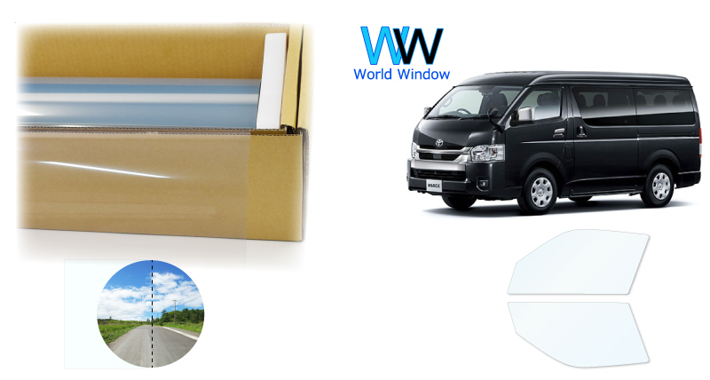> 透明遮熱フィルム スーパーUV400IR87 トヨタ ハイエース(3型~5型) (200系) カット済みフィルム フロントドアセット