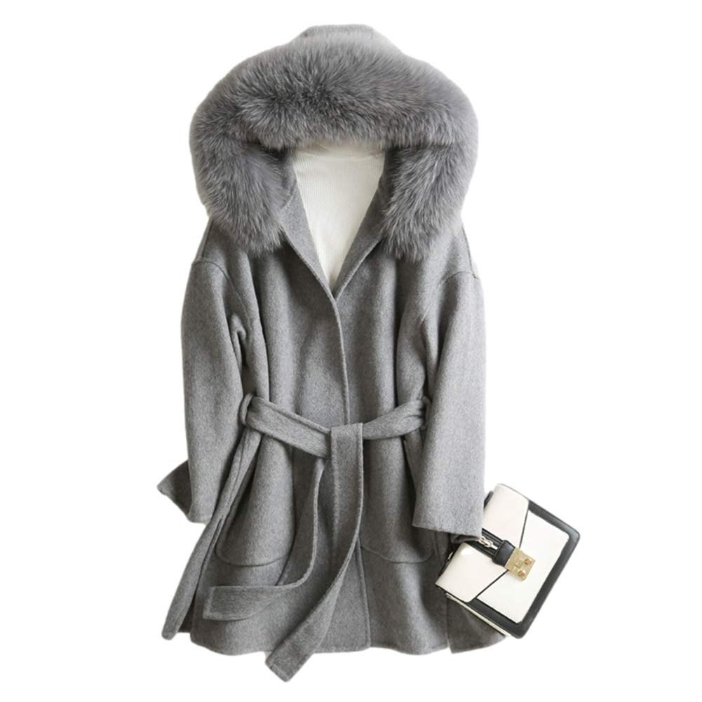 - ウールコート レディース チェスターコート フード付き ファーコート無地 ミドル丈 秋冬 アウター Aライン OL 通勤 グレー M-L