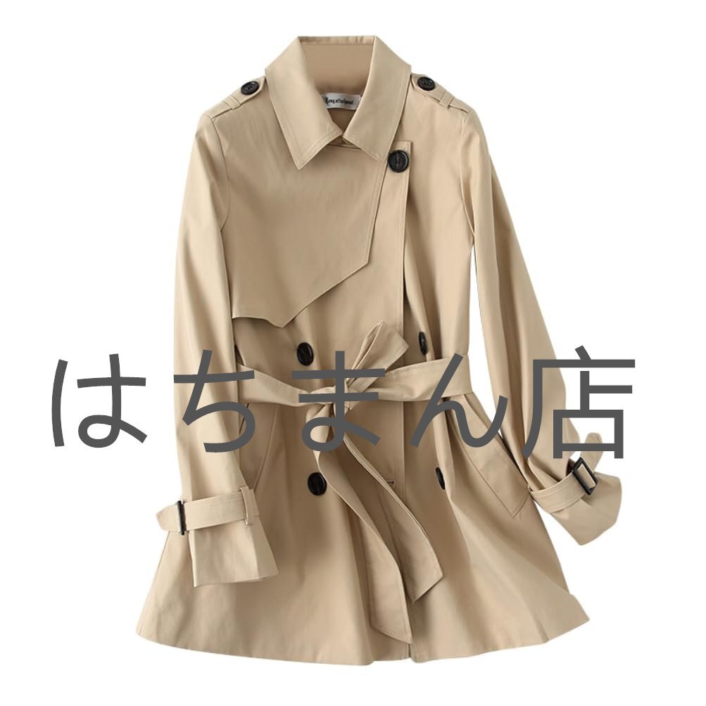 - トレンチコート ショート丈 レディース スプリングコート ショートコート ベルト付き 秋コート アウター オフィス カーキ M-4XL