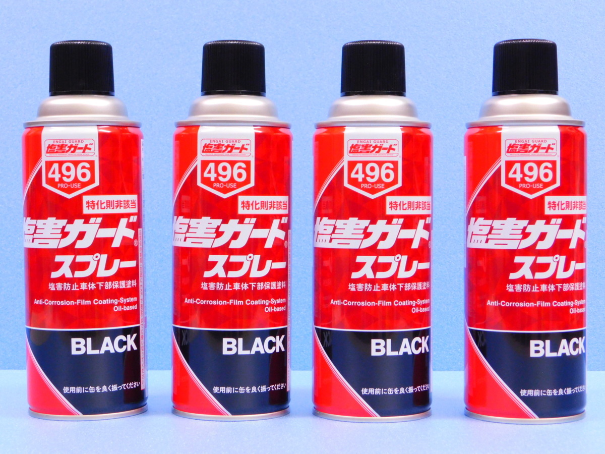 - 4本セット【塩害ガードスプレーブラック・NX496】※ 下回り塗装の定番商品 (手軽な缶スプレータイプ)