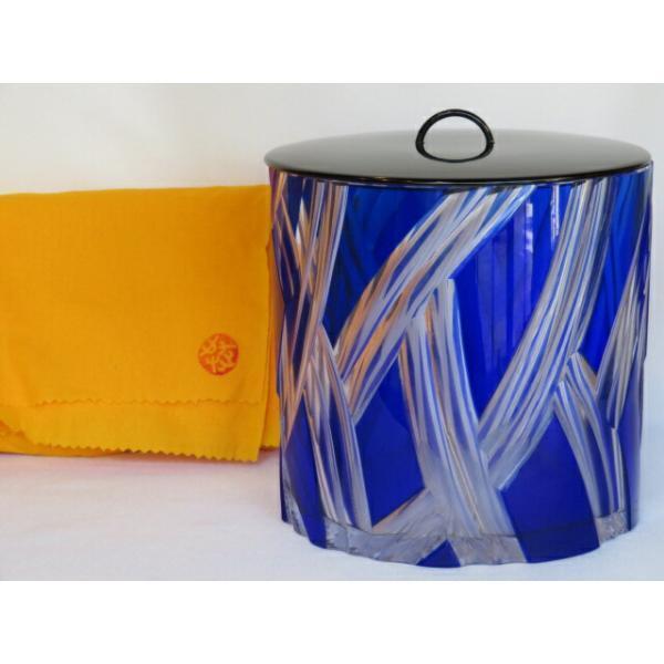 - (十月☆特売品)千葉県 河上恭一郎作 ギヤマン 義山 瑠璃被水指 ガラス 木製真塗誂蓋 茶道具【税込・送料込】【中古・美品】