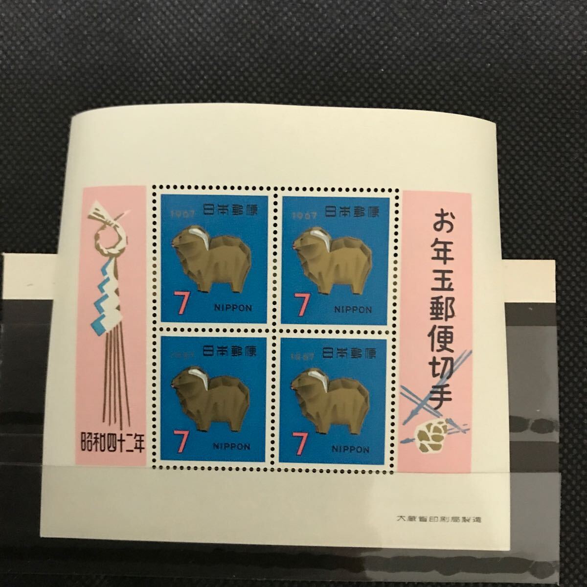 - 【未使用 お年玉年賀切手シート】お年玉郵便切手 昭和42年 7円x4