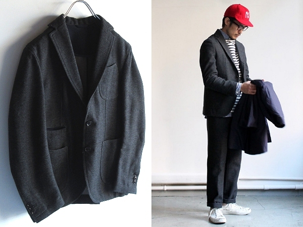 - maillot マイヨ C/W Set Jacket ウールコットン 段返り 2Bテーラードジャケット ブレザー 2 チャコール Strato/ストラト取扱ブランド