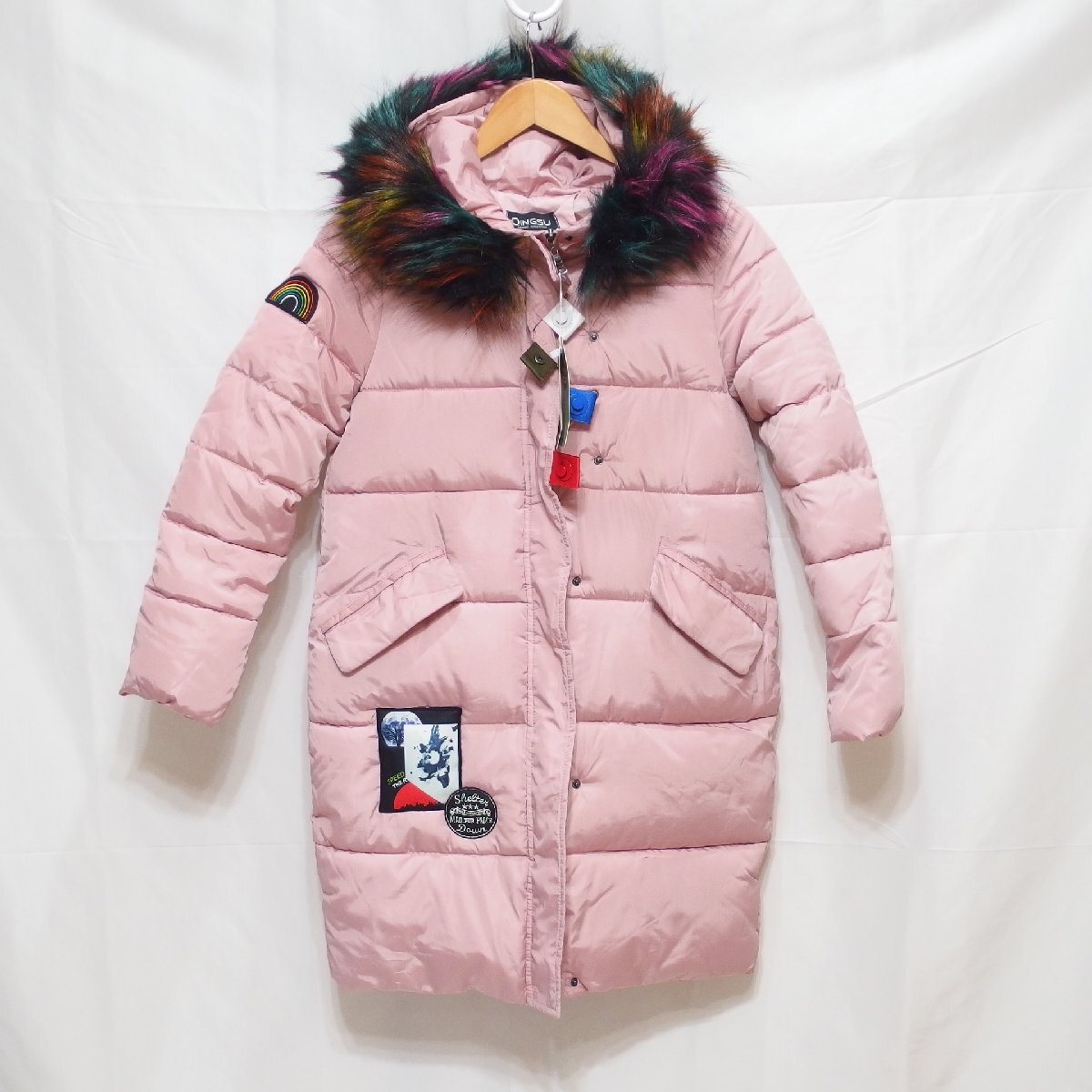 > 女の子用◆フード付き ロングダウンコート(ピンク)サイズM(160)◆未使用保管品 72