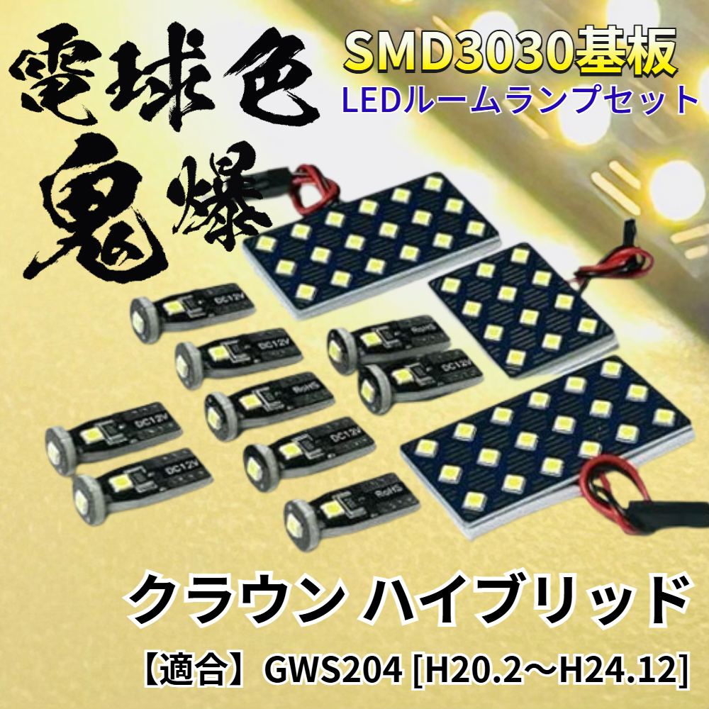 > 【電球色】クラウン ハイブリッド GWS204 暖色 鬼爆基板 3030SMD LED ルームランプ セット 車内灯 室内灯 パーツ アクセサリ