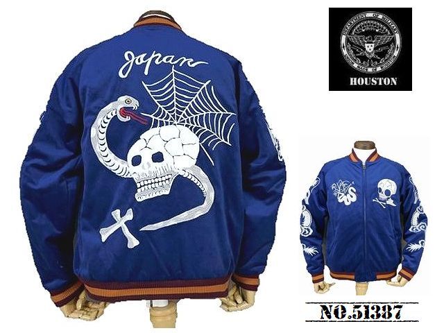 > 【送料無料 25%OFF】HOUSTON ヒューストン 別珍スカジャン SOUVENIR JACKET 「SKULL柄」 NO51387 NAVY_Mサイズ
