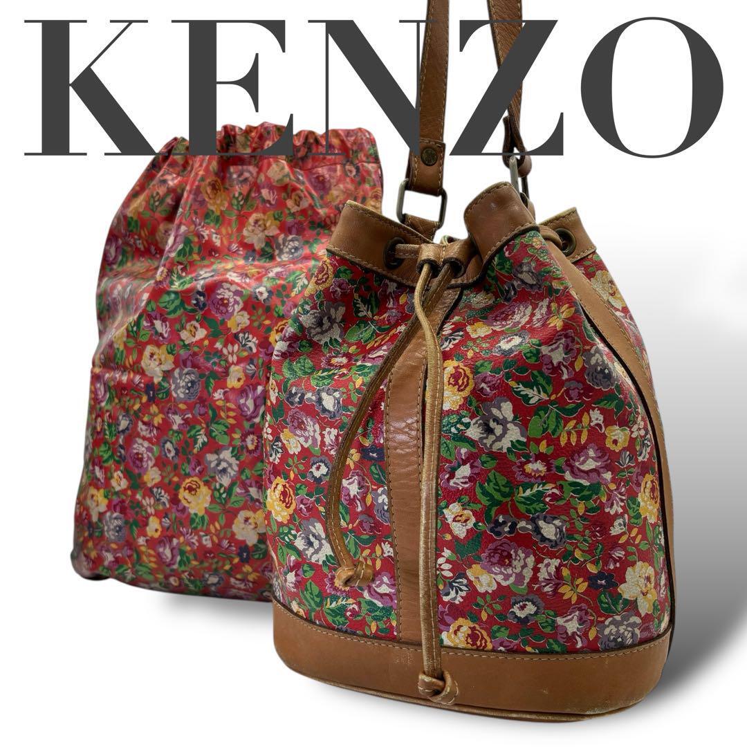 - KENZO ケンゾー バケツバッグ ショルダーバッグ レザー 花柄 レッド 赤