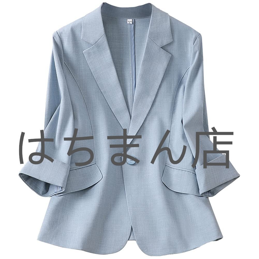 - テーラードジャケット リネン レディース アウター シンプル 麻混 裏地なし 7分袖 春 羽織り 春夏 カジュアル 綿混 麻 スカイブルー S-XL