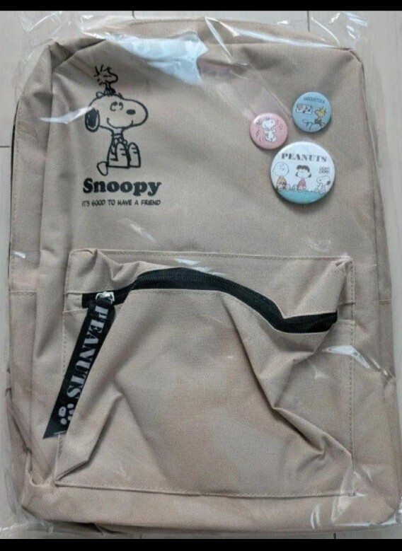 - 【新品】スヌーピー リュックサック べージュ 缶バッジ付 SNOOPY リュック