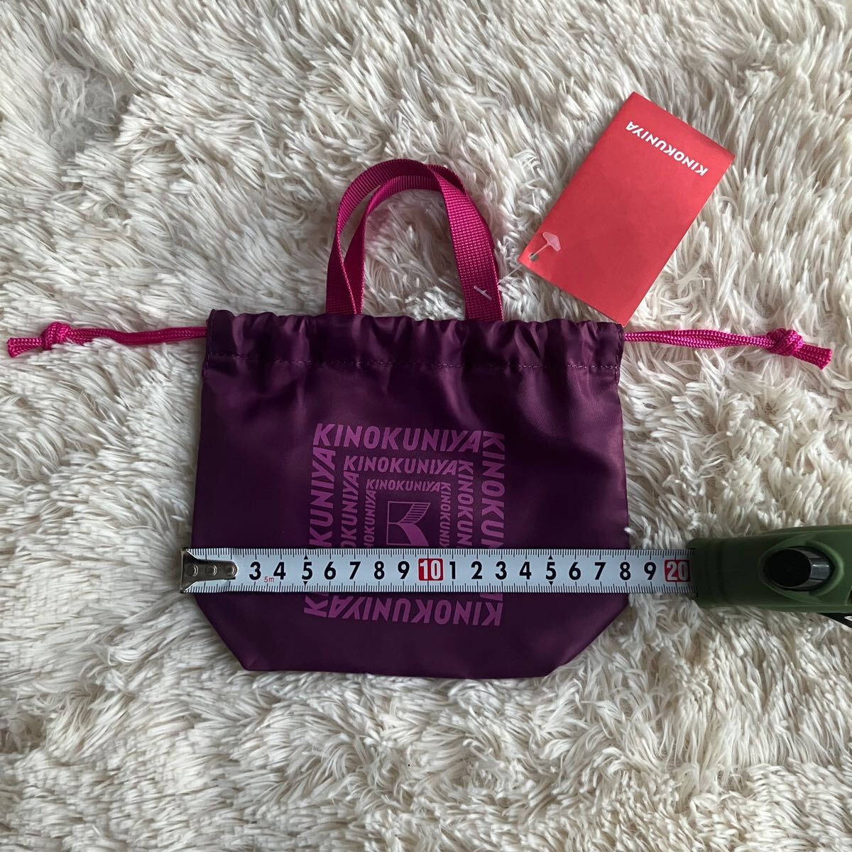 - 紀ノ国屋 手提げ巾着 KINOKUNIYA きんちゃく ポーチ パープル × ピンク