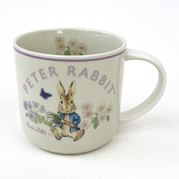 ピーターラビットとお花柄が可愛いマグ。食洗機・電子レンジ使用可◎(経年により退色が起きる場合がございます。)【サイズ:直径85×H80?】【重量 220g】【容量:350ml/満水】