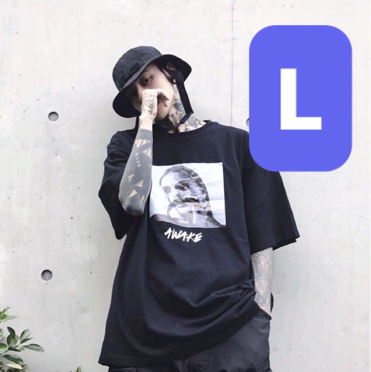 - Tシャツ トップス 半袖 ビッグシルエット シャツ カットソー プリント トレンド ストリート 人気 渋谷 原宿系 シブい 大人 ブラック L