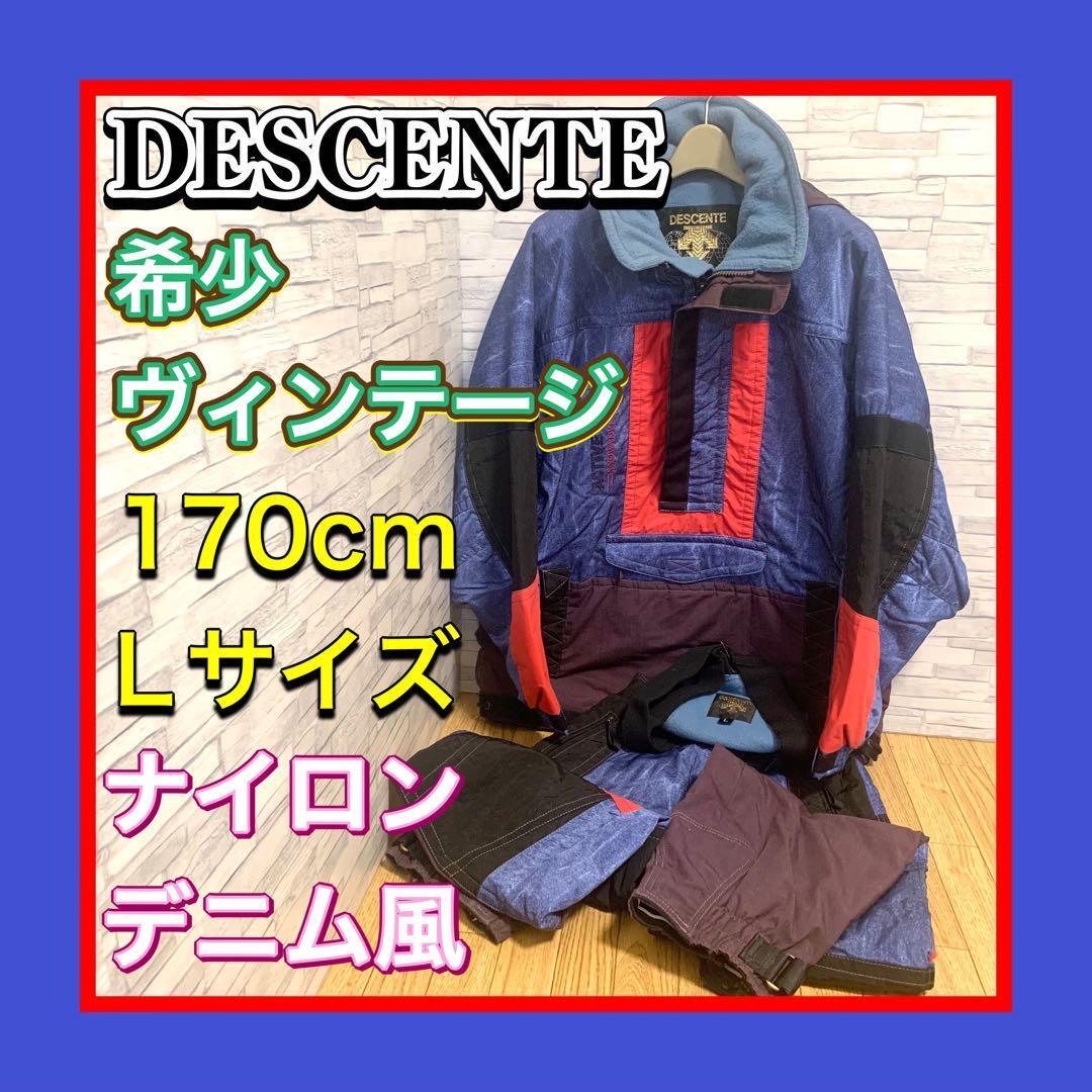 > 希少レア デニム風ヴィンテージ DESCENTE/デサント スキーウェア上下セット 170cm 胸囲94㎝ 胴囲80㎝ Lサイズ
