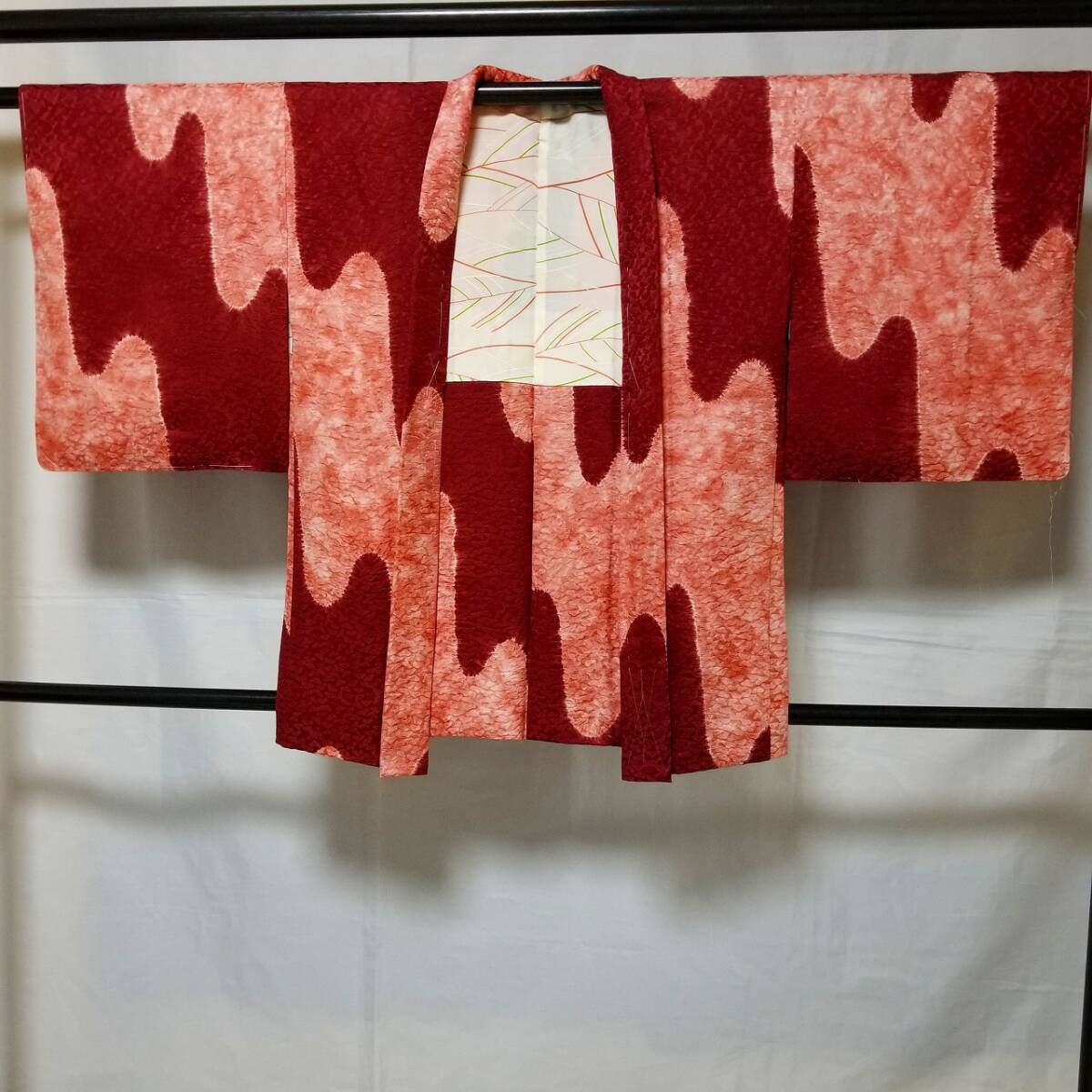 - 【桐徳】羽織☆送料無料☆しつけ糸付{正絹*逸品物*袷羽織}丈80-裄63*ワインレッド色地*松地紋*縫い締手絞り.本蝋結染の図案文様*№6936