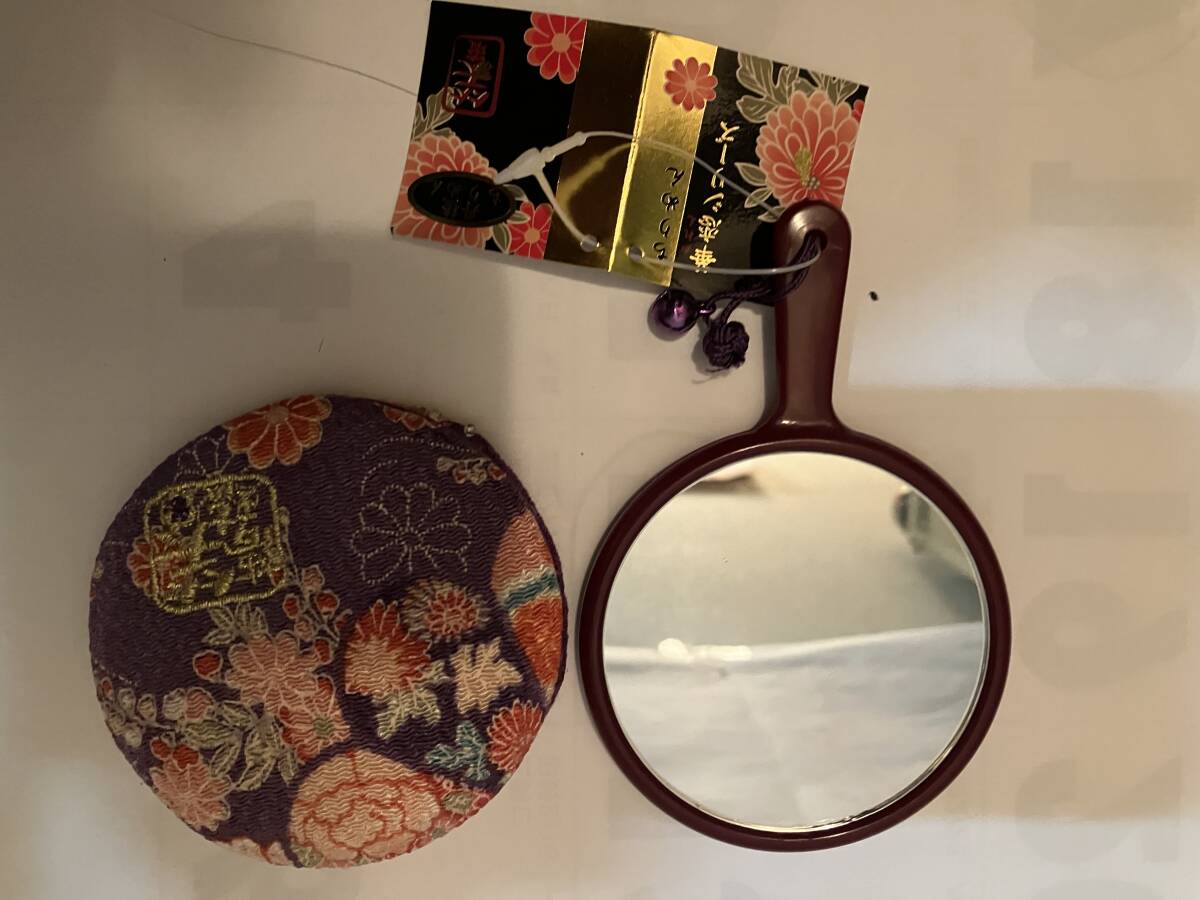 - 和雑貨四点セット「手鏡・ブローチ(2個 金色・銀色)・入り子升