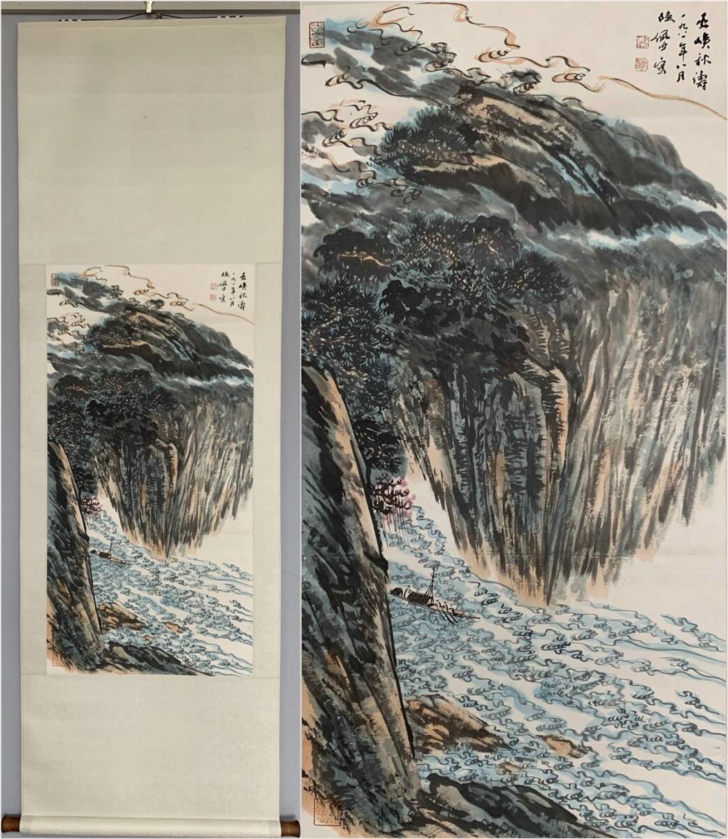 - 古美術 掛け軸 中国・近現代 「陸厳少書」 紙本 【巫峡秋濤図】 立軸 書道 巻き物 肉筆保証 唐物 古画 画心96×49cm LT-2412187