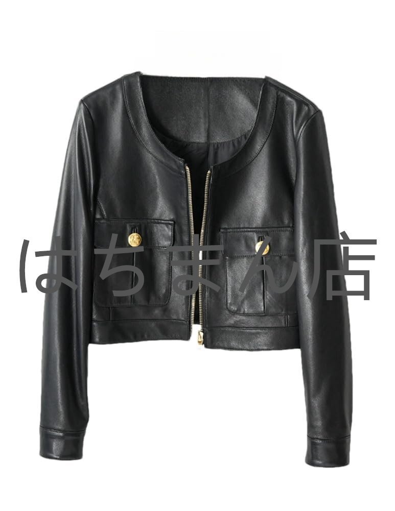 - ノーカラージャケット レディース 本革 レザージャケット 革ジャン 皮ジャン 本皮ジャンパー 上質 ブルゾン 結婚式 ブラック S-XL