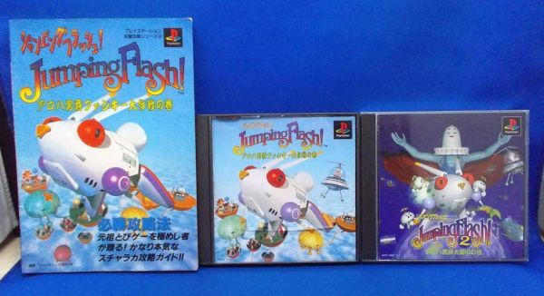 > PS ジャンピングフラッシュ! & ジャンピングフラッシュ!2 & 必勝攻略法 3点セット エグザクト 攻略本 現状品 PlayStation Jumping Flash!