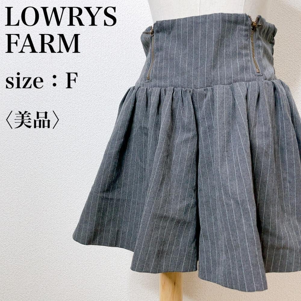 - 【美品】LOWRYS FARM ローリーズファーム カジュアル ウエストゴム キュロットスカート ハイウエスト ストライプ フェミニン グレー ろ40