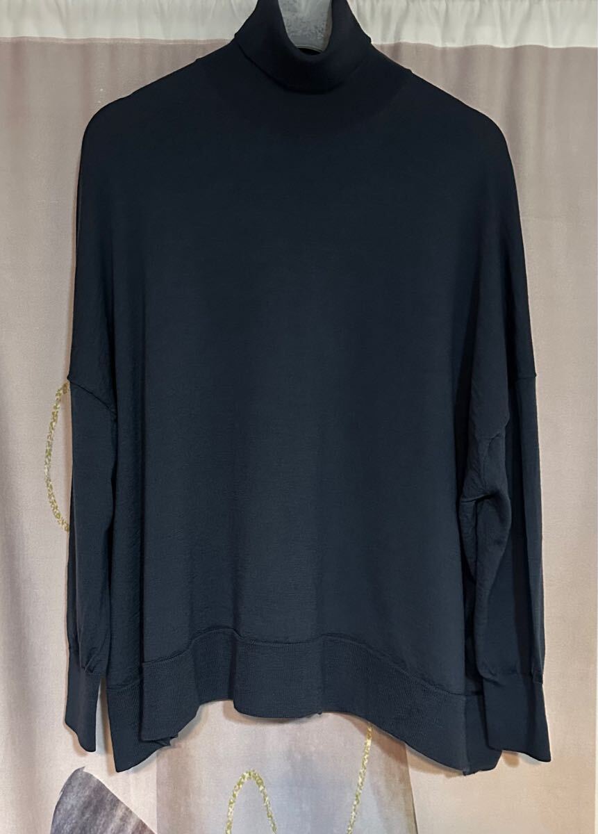 - 23区 ハイゲージ ウール ドルマン タートルネック ニット ブルー系