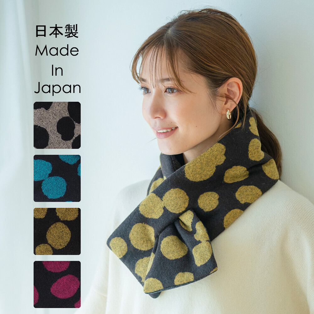 - 中わた入り 差し込みマフラー ドット柄 日本製 ブルーグリーン 水玉柄