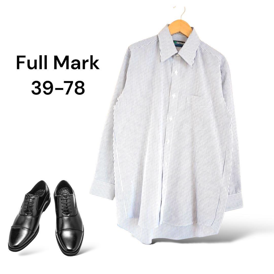 - 美品フルマーク Full Mark シャツ ストライプ【39-78】紺 白