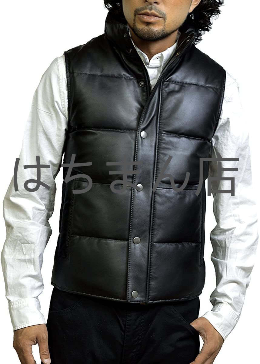 - ダウンベスト メンズ レザーベスト 本革 レザーダウンベスト 革ジャン ブランド ベスト おしゃれ レザー 革 皮 秋冬 ブラック M-3XL