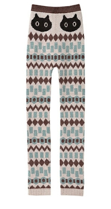 - ワコール★マタノアツコ★あったか厚手 レギンス 10分丈★毛パン★M-Lサイズ★MEMEちゃんx幾何学模様★アイボリー/IV★俣野温子