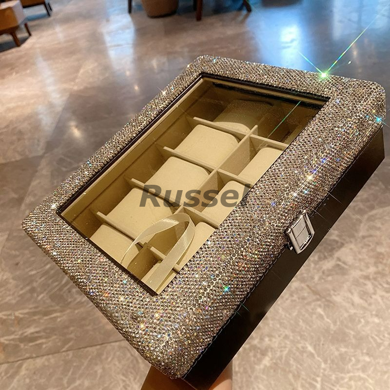 - 腕時計収納ケース 10スロット レザー キラキラ デザイン 腕時計 収納ケース 時計ボックス ラグジュアリー おしゃれ かわいい モダン 高級感