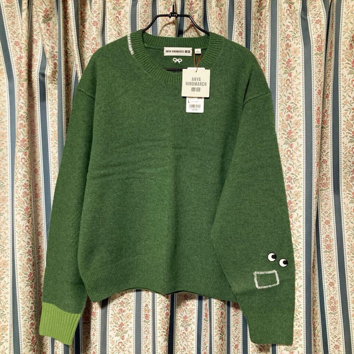 - 新品!ユニクロ×アニヤハインドマーチ プレミアムラム クルーネックセーター ユニセックスLサイズ ニット 長袖 ウール100%