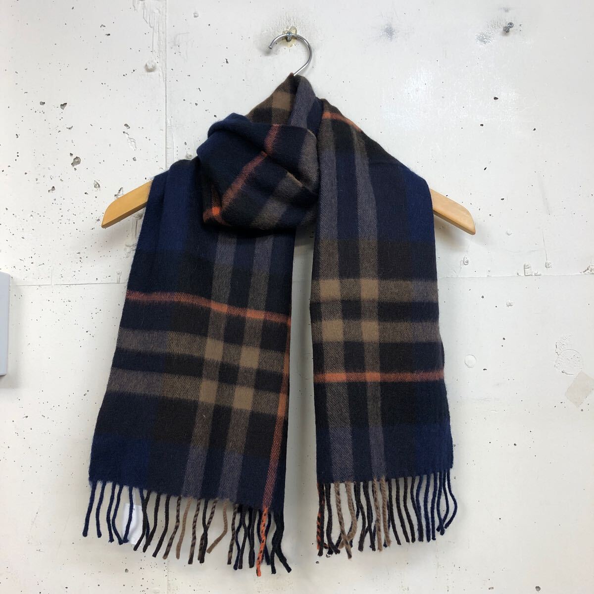 - W.J.HENDERSON SCOTLAND ダブル ジェイ ヘンダーソン ウール&アンゴラ マフラー イギリス製 チェック柄 ブルー ネイビー