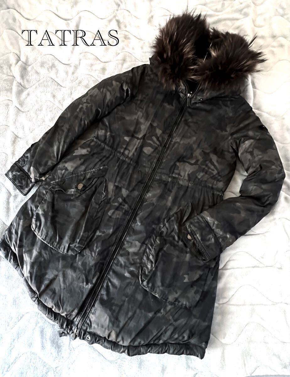 - タトラス TATRAS ダウン コート ジャケット レディース フード/ファー カモフラ 迷彩 アウター サイズ2 ブラック系 定価17万ほど!