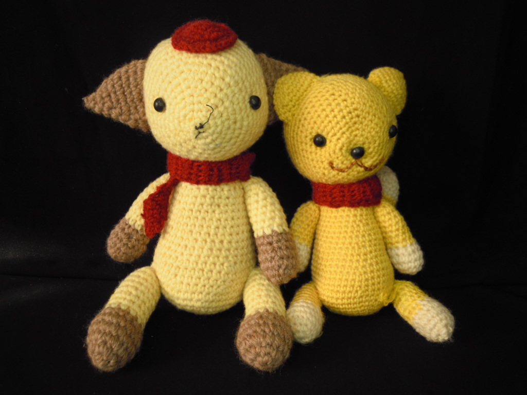 - 【三】ハンドメイド?編みぐるみ2匹 ぬいぐるみ ◇ 2匹は仲良し 珍品雑貨