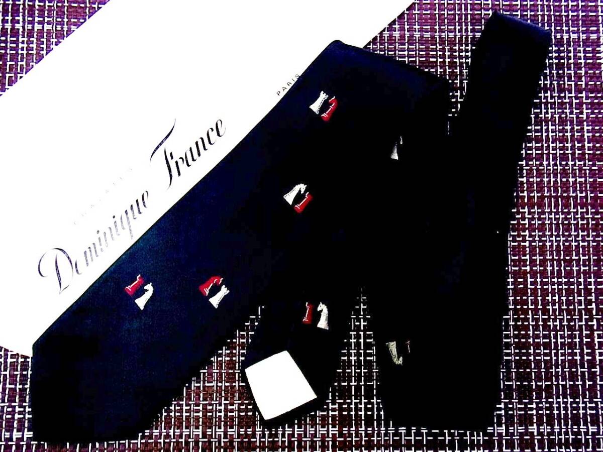 > ☆状態並N☆6858■ドミニクフランス【定価6万円超】高級モデルPeau de Soie【ポー ドゥ ソワ】チェス ネクタイ(ドミニックフランス)