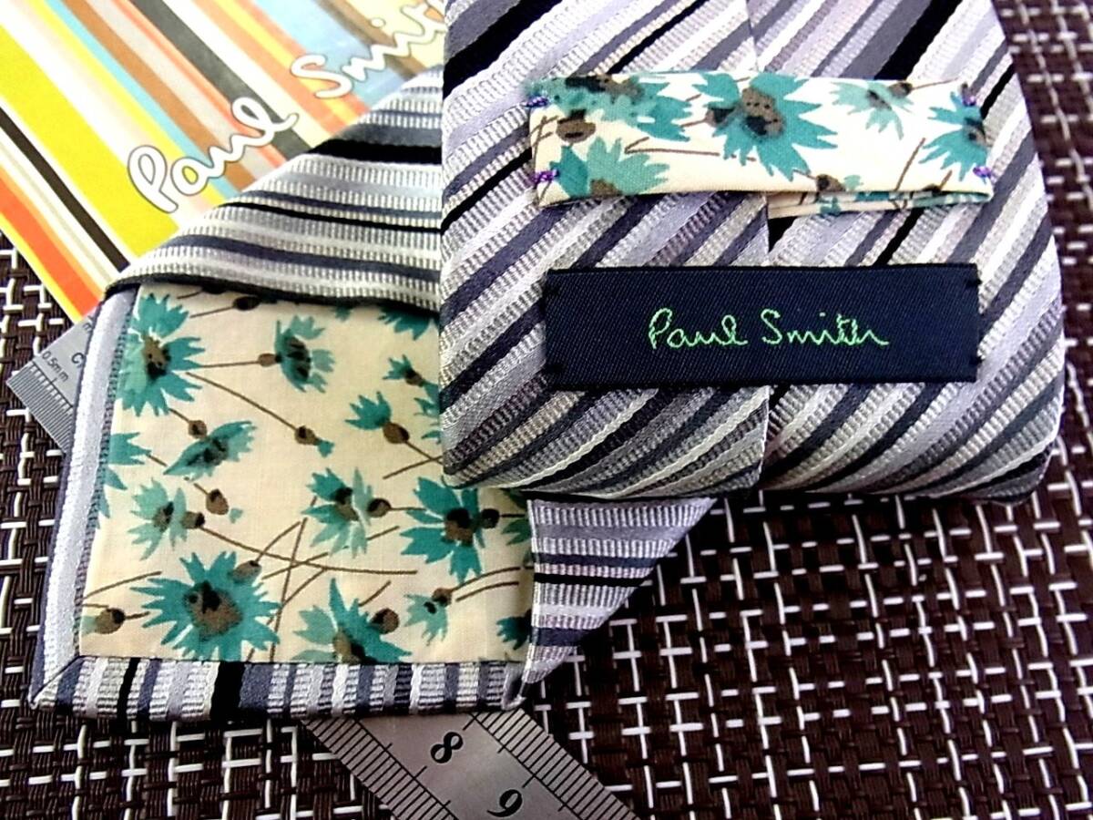 - ☆状態並N☆6936■ポールスミス「人気の裏地・花モデル」【Paul Smith】【ストライプ 柄】ネクタイ