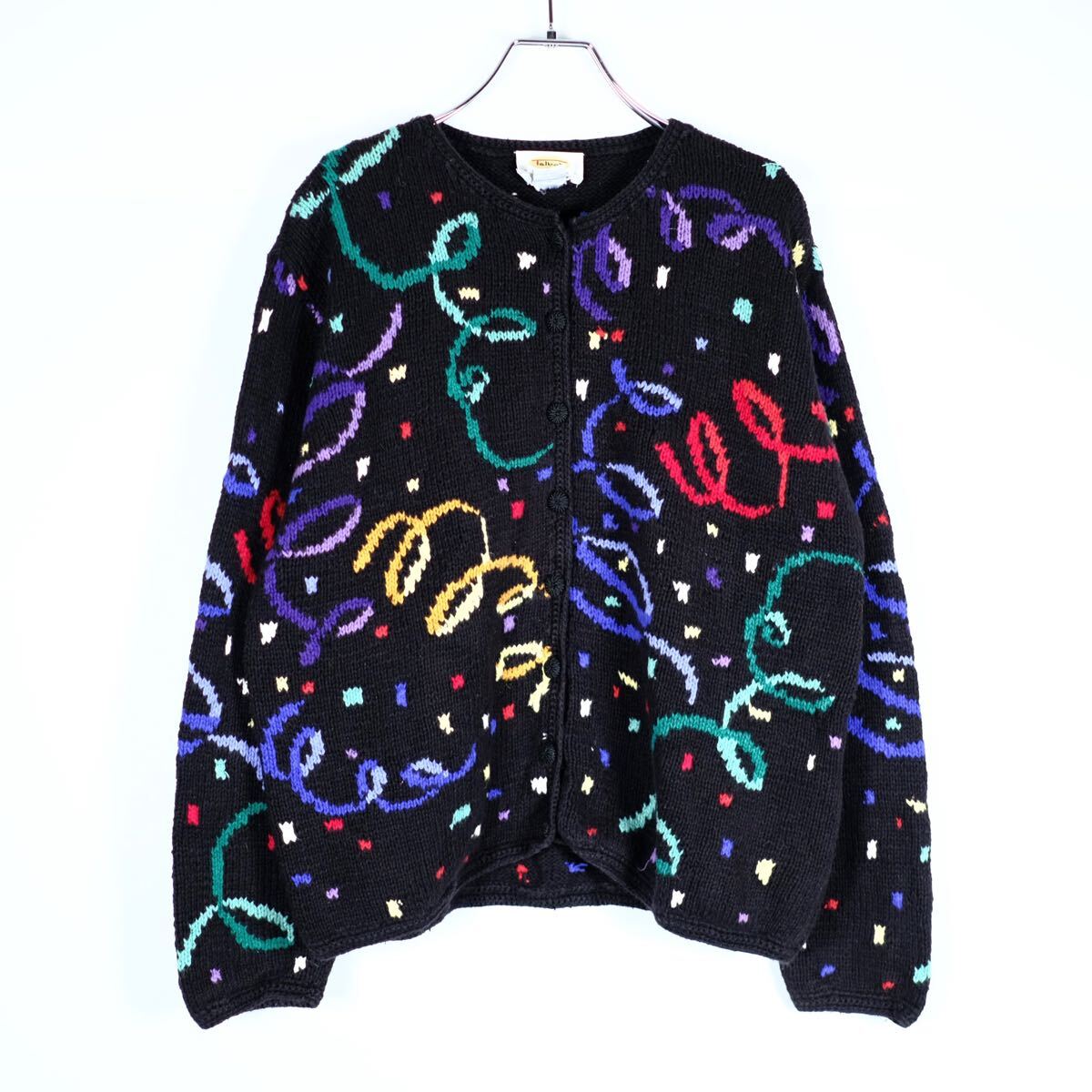 - 1990s Talbots ハンドメイド デザインニットセーター アート 総柄 古着屋 アート カラフル 手編み オーバーサイズ タルボッツ