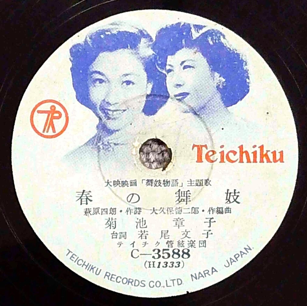 - SP盤 菊池章子, 台詞:若尾文子 - 田端義夫 / 春の舞妓 -大映映画「舞妓物語」主題歌- 外袋付き テイチク C-3588 /tw76